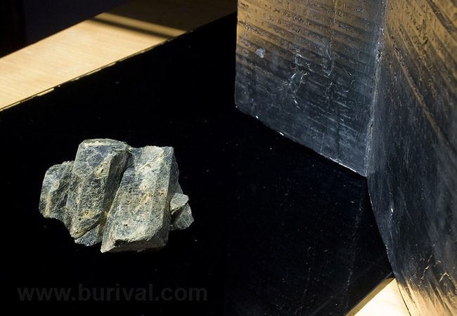 Ukázka skorylu a muskovitu z Netína, která byla focená na černém skle při umělém osvětlení.