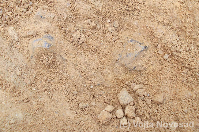 Domluvili jsme se, že tam přijedu další víkend s "hrabátkama" a někde to otevřeme pořádně. Jak dohodli, tak provedli. V horní části cesty (v dolní si po večerech hrabal sám) jsme začali kopat. Šli jsme po žíle a narazili na dutinu v hloubce od 50 do 70 cm. Ta byla zborcená a vyplněna jílem, ve kterém se nacházely samostatné krystaly i části dutiny. Našly se opravdu pěkné kousky.