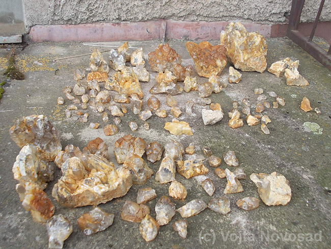Pak u mě nastaly dlouhodobější zdravotní problémy a tak byl se šutrama na nějaký čas klid. Po uzdravení jsem navštívil pár lokalit, ale pořád mě to nějak táhlo se ještě znovu podívat ke kámošovi. Tak jsem jednoho dne za ním vyrazil. Řekl mi, že to už bude asi vybrané, ale ať prý klidně zkusím štěstí. Ze začátku jsem opravdu nic kloudného nenašel. Chtěl jsem to zabalit, když to kamarád nevydržel a přišel se za mnou podívat, jak se daří. Zeptal jsem se ho na dolní část cesty, kterou přehrabával sám. Prý vybíral jen větší kusy, a že to tam zkusí se mnou. Hned při prvním kopnutí jsem narazil na neporušenou žílu otevřenou do dutiny, v hloubce 20 až 30 cm. Znovu se objevily krásné krystaly křišťálu a křemene. Z téhle návštěvy jsem si odvezl zeleninovou přepravku kamenů. Stejné množství zůstalo i kamarádovi. Myslím si, že se tam ještě někdy vrátím, protože se tam bude kopat sklípek a půjde se do hloubky. Snad tedy ještě nějaké nálezy budou.