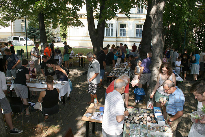 Tahounem akce bude samozřejmě výstava/burza minerálů pod širým nebem. Zatím je přihlášeno cca 40 vystavovatelů, v nabídce budou výhradně přírodní minerály. Velmi bujícím nešvarem většiny burz minerálů je stále rostoucí počet prodejců korálků, různých podvodných nabídek vylepšených minerálů a kdejaké další nesouvisející veteše. Nezbývá tedy než podpořit burzu hojnou účastí nás sběratelů, loňský premiérový ročník se velmi vydařil. Letošním bonusem je soutěž o nejlepší stůl, vítěz se může těšit na zajímavou cenu.